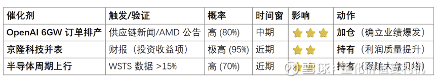 正常(50% 概率):周期复苏+稳健增长。半导体行业回归常态增长,AMD 份额稳定,京隆科技贡献稳定利润。股价在目前位置震荡向上。
