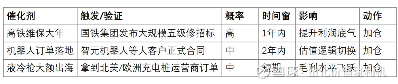 关键触发点清单:当【EV毛利止跌】且【国铁招标放量】并【液冷外销占比提升】→ 进入“重估窗口”。