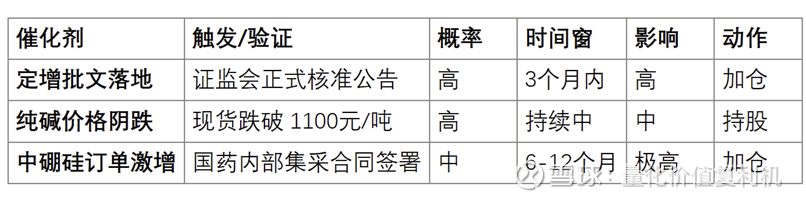 若【销售毛利率 连续两个季度回升 ≥ 2%】→ 证明高毛利的中硼硅占比在提升,进入“重估窗口”;
