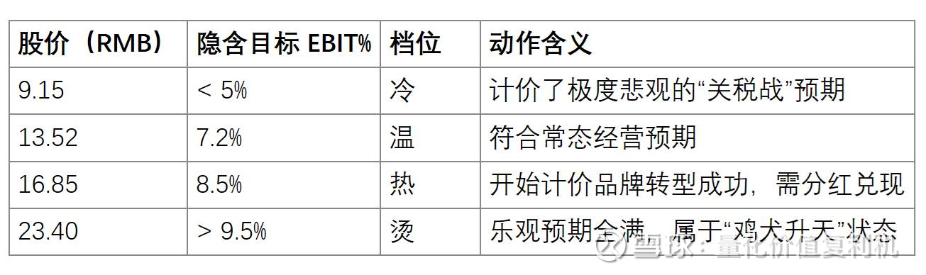 估值热度: 冷到温。目前股价主要计价了“地缘风险”,完全没给“品牌转型”溢价,属于“安全边际”较厚。