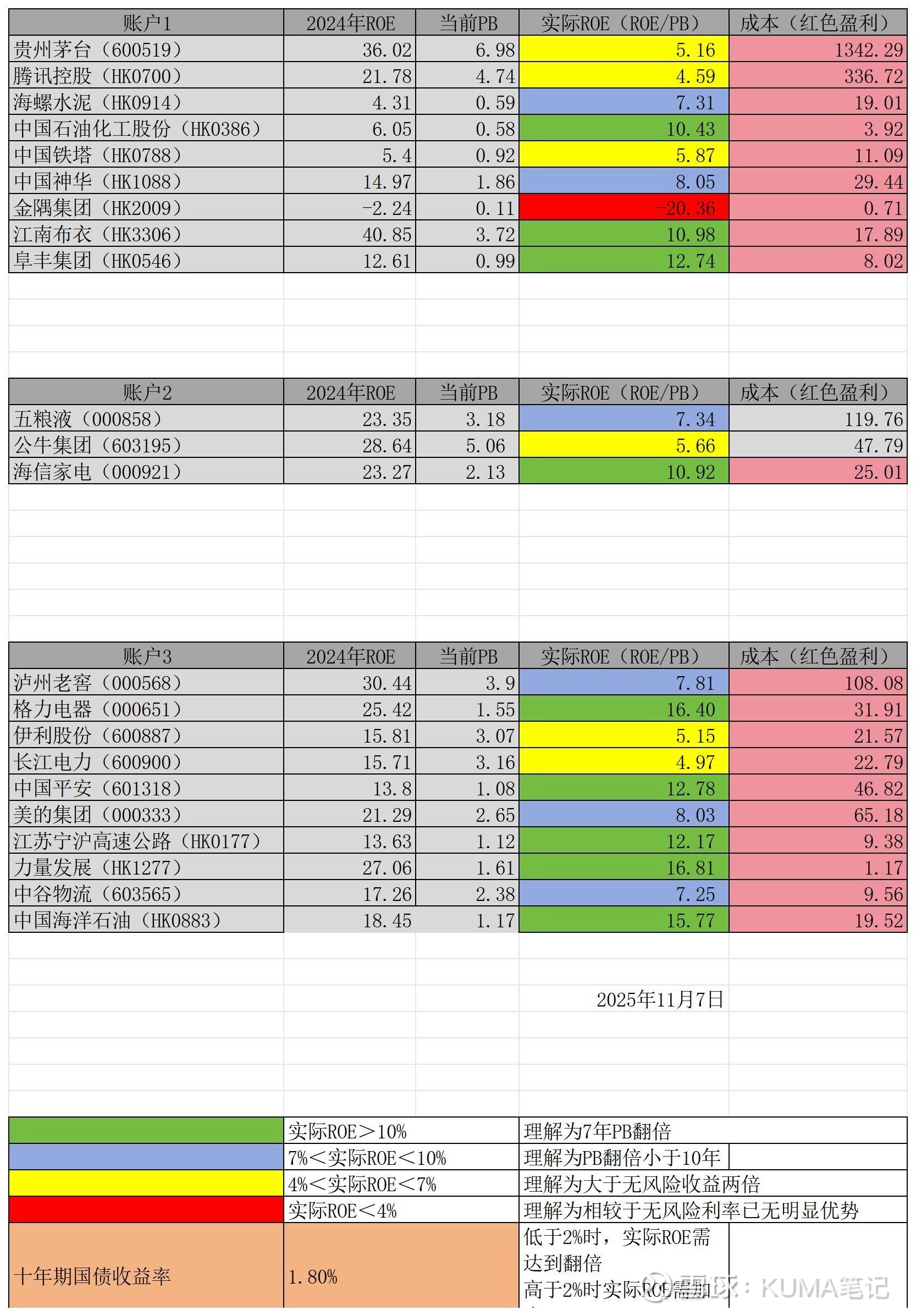分红是长期持股的基础,为什么说实际ROE(ROE/PB)是衡量股票估值高低的参考?当实际ROE在5%左右时,你能够赚到的钱基本就是那5%×持股年数,也就是说,分红如果是5%左右,那么你最后能赚到的大概就是一个分红除权的钱,伊利股份和长江电力目前大概就是这么个情况。