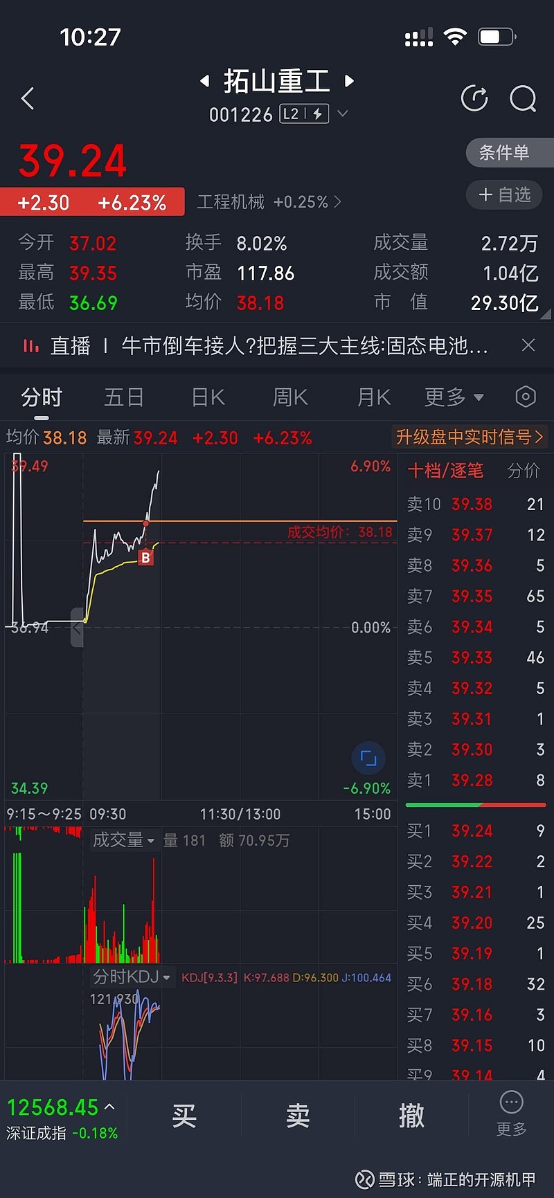 搞了把这个,可能和9月9日国新办新质生产力发布会相关,后面涨停看量很小就涨停了,尾盘集合竞价成交32手没人卖,一看雪球都一个多月没人讨论了