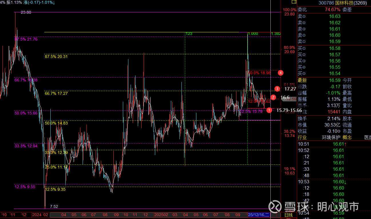 回复@明心观市: 老师,现在国林科技有新变化吗//@明心观市:回复@小八喵喵:$国林科技(SZ300786)$ 近期这波回调,空间上在15.79-15.66价格区获得支撑展开回升,昨天突破到白线上,短趋势是转多信号,结合百分比看,当前支撑16.62 ,则低点安全,可先跟踪反弹17.27,能进一步站上,则底部有望走出,届时再看18.98;但这波回调的时间上不够,下个窗口12月16日,这期间大概率还是要底部反复,等时间够了,价格走出的概率才更大;短风控参考15.66,波段风控参考14.83