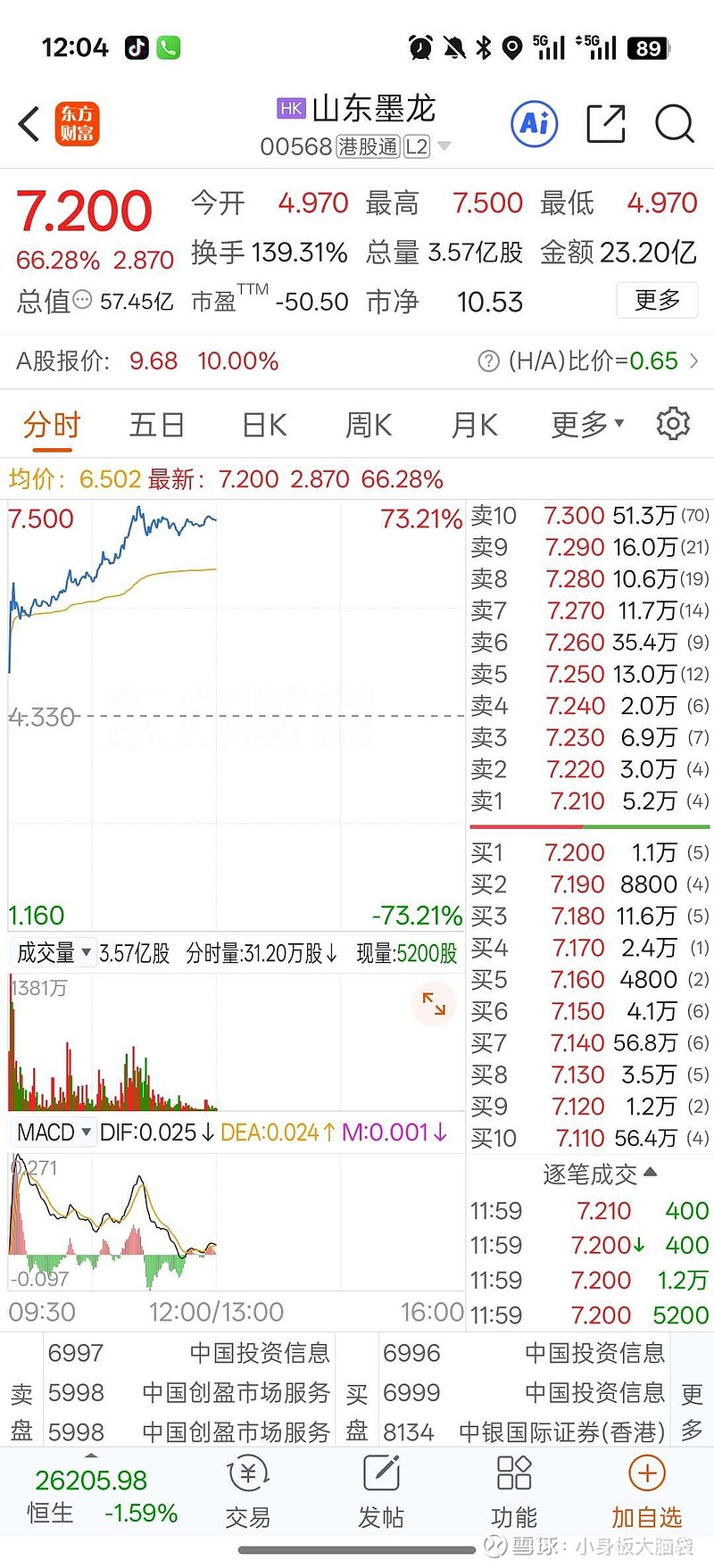一上午没看山东墨龙港股,看一眼吓到我了。