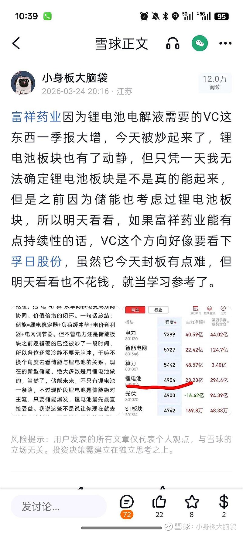24号写的,25号开始买孚日股份,虽然富祥药业应该更好,但是既然决定孚日股份,那就买定离手,没有后悔一说,目前孚日盈利8个点不到,我也挺满意了,毕竟很多年没好好买过主板。另外,锂电池虽然没有如愿继续走强,但东方不亮西方亮,Vc也是化工品,化工板块走强,也一样的。还有优博讯创了120天新高,如果冲不动了,分时下方也开始无持续买量,注意减仓吧。
