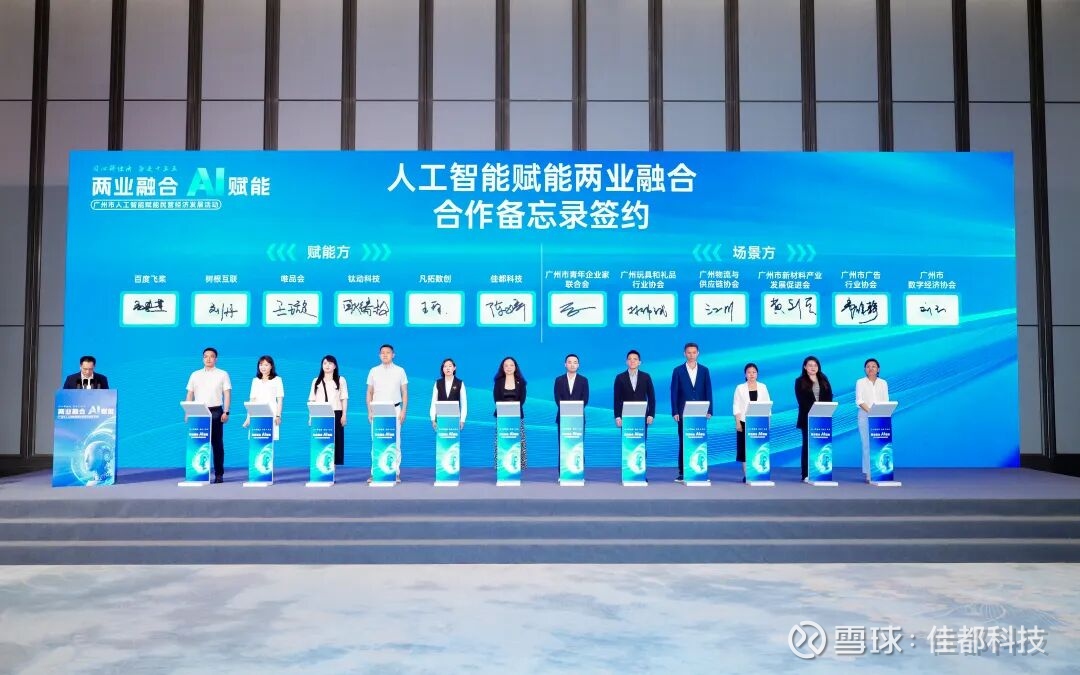 会上,佳都科技等多家龙头科技企业与广州市制造业协会等相关行业协会场景方现场签署“人工智能赋能两业融合合作备忘录”。合作双方将围绕人工智能技术在制造业与服务业中的应用,在技术交流、资源对接、人才培养等方面开展深入合作,共同探索创新合作模式,促进产业协同发展。