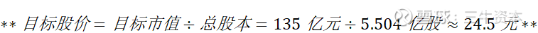 截至2025年7月,公司实施可转债转股和强制赎回后总股本增至5.5044亿股(全部转股摊薄后股本)。据此计算对应的目标每股股价约为: