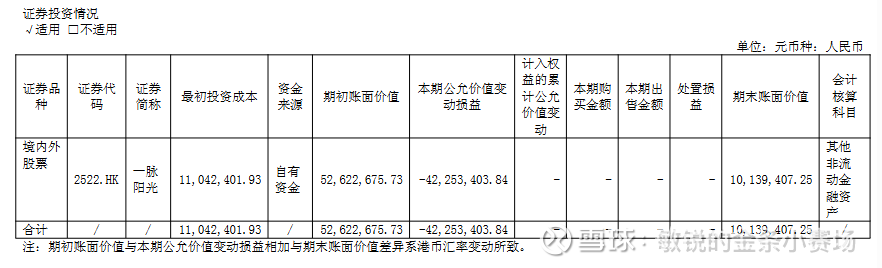 该投资的价值随一脉阳光(2522.HK)的股价波动调整,而非按权益法确认标的净利润;