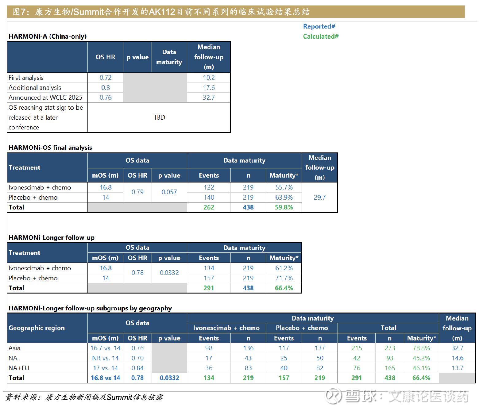 之前康方针对中国版HARMONi-A,公布数据为中位PFS 7.1个月 vs 4.8个月(HR 0.46,p<0.0001),ORR提升15%(全球版仅11%),其余类似。但OS数据尚未成熟。