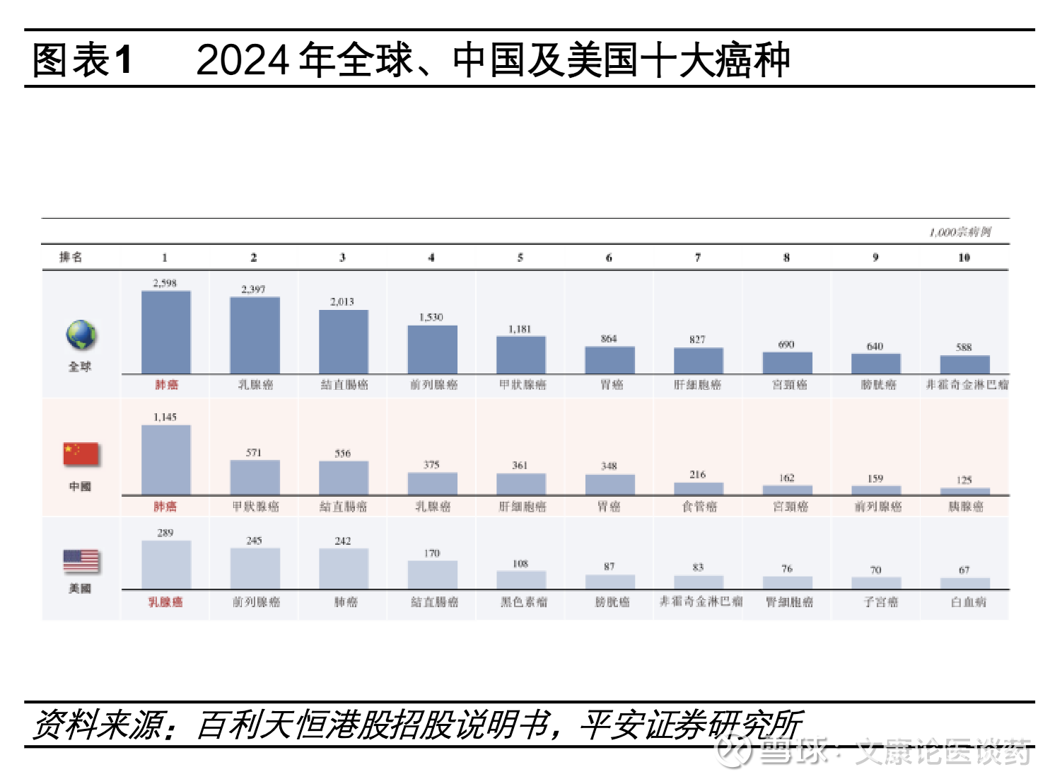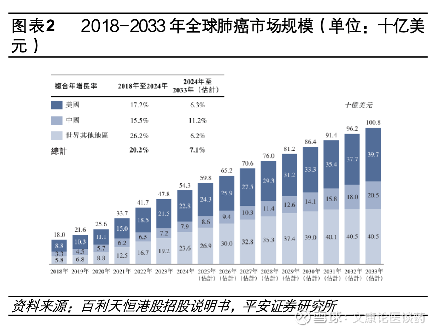 肺癌是全球最常见的恶性肿瘤,对应药物市场规模亦庞大。2024年全球约有260万新确诊肺癌患者,当期中国新发肺癌病例数约115万,美国新发肺癌病例数24万。非小细胞肺癌NSCLC占每年肺癌病例的大多数(~85%),腺癌(占NSCLC的40%)和鳞状细胞癌(占NSCLC的25%)是NSCLC最常见的亚型。2024年全球肺癌药物市场规模约543亿美元,其中美国/中国肺癌市场规模分别为228/79亿美元。