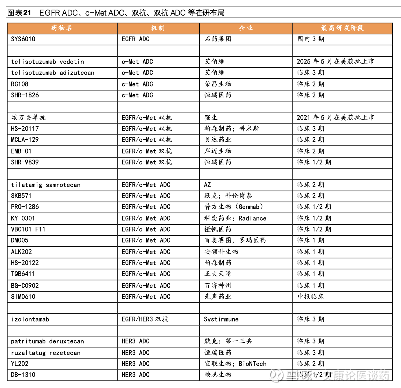 3.3 针对EGFR替代信号旁路激活,EGFR/c-Met双抗、c-Met ADC等取得突破