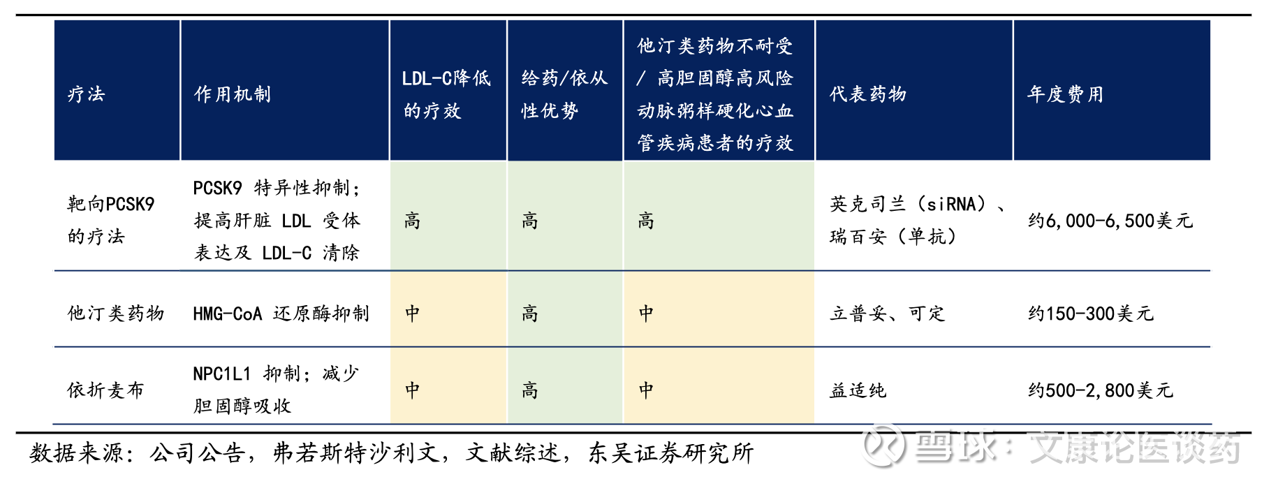 PCSK9 siRNA机理:PCSK9蛋白通过促进肝细胞上低密度脂蛋白(LDL,“坏胆固醇”的主要载体)受体的降解,自然调节胆固醇代谢。PCSK9 siRNA 通过靶向和抑制PCSK9蛋白的表达,阻止这种降解发挥作用,从而减少了功能性LDL受体的分解,增强了LDL-C的清除率,从而降低了LDL及整体胆固醇水平。临床试验也验证了机制的有效,足以实现显著的LDL-C降低(通常为50%-70%,而他汀类药物一般为20%-50%,依折麦布为15%-20%),并证明对他汀类药物不耐受或无法通过常规疗法达到目标水平的患者特别有效。基于现有的安全性数据和对现有治疗的补充机制,PCSK9 抑制剂为管理高危HC患者提供了重要的治疗选择。