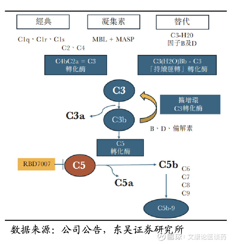 补体系统介绍:补体系统调节先天免疫和适应性免疫。当该系统出现故障时,可导致组织损伤和炎症,引起补体介导的肾脏和自身免疫性疾病,例如 IgAN 和重症肌无力(MG),以及其他补体激活反应,从而导致严重的发病率和致残率。补体系统通过3条激活通路,经典途径、凝集素途径和替代途径,在肾脏疾病的炎症和纤维化介导中起关键作用。这些途径通过酶扩增聚合,形成C3/C5转化酶,最终导致膜攻击复合体(MAC)组装,这个复合物进而促进了炎症和细胞破坏。