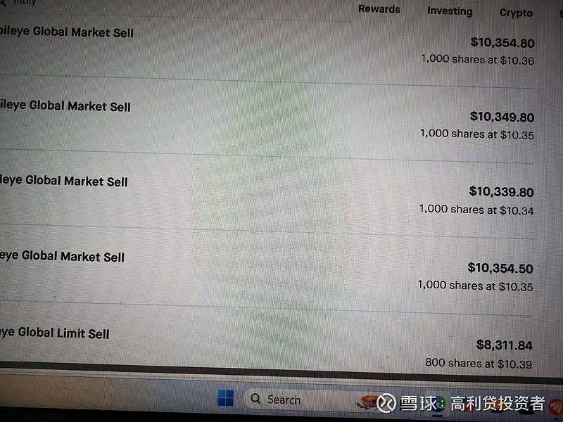MBLY看势头不对,早晨起来10.35元几刀了解,5800股小赔1000多,不算赔。10.55元买的,经常这样试错。属于快刀手。