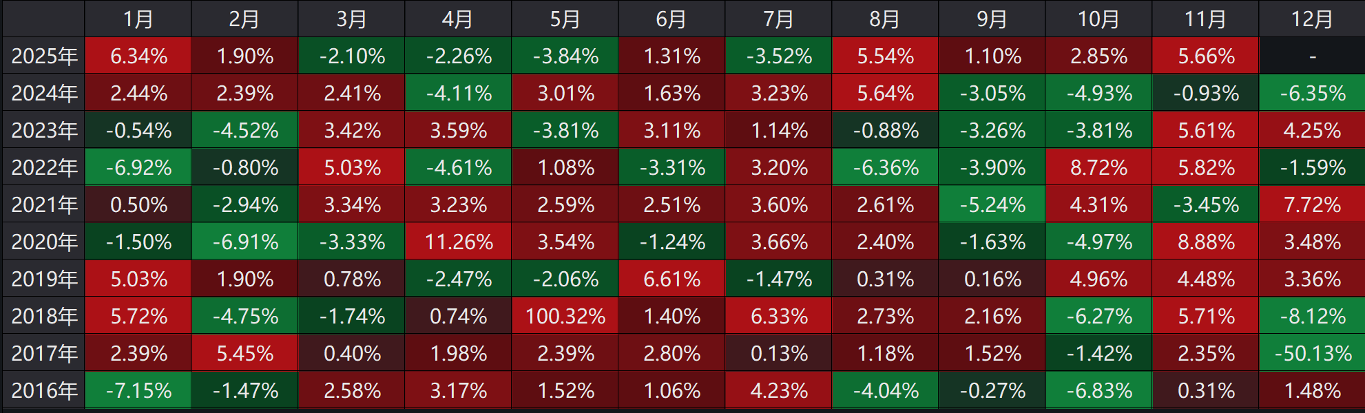 IXJ(标普全球医疗)和XLV的核心持仓接近,下表是过去10年IXJ的月度收益,11月胜率确实明显要高一些。