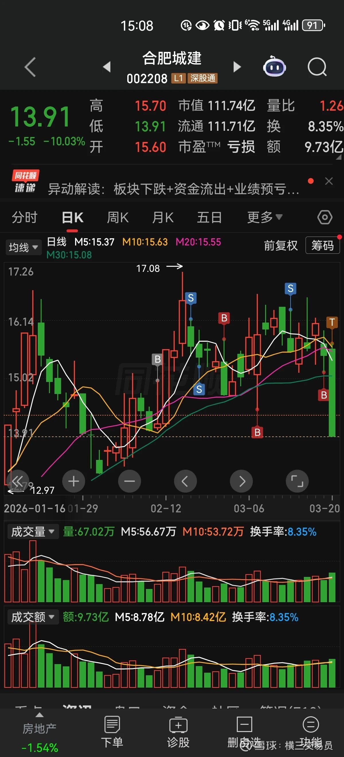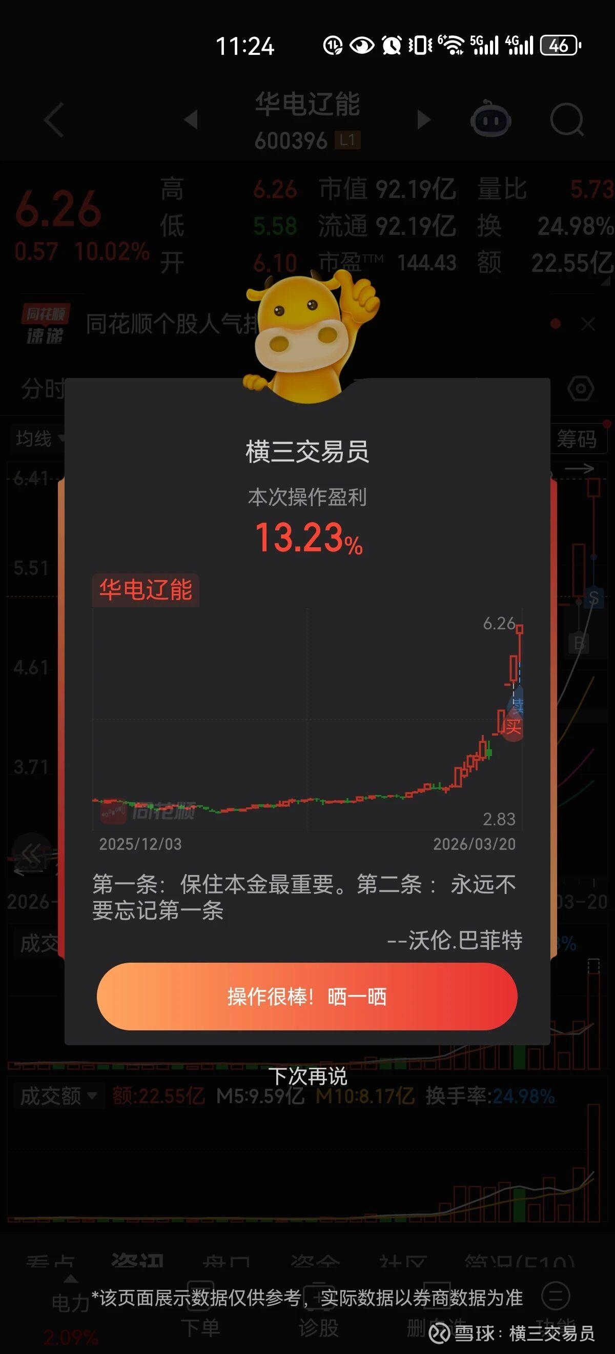 做个交易记录:华电辽能卖出赚13%,合肥城建做了个倒T,操作层面问题不少。指数方面,上证放量补缺,中午GJD出手几个ETF,下午两点半没有出手。上证几乎收了个满长黑,要谨防转熊预期,做好防守。$华电辽能(SH600396)$ $合肥城建(SZ002208)$