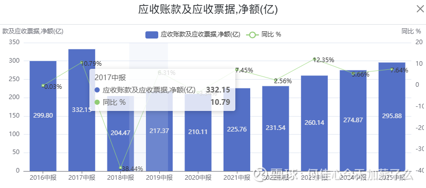 从2018年开始,中通服的应收从200增加到300,只增加100亿;而应付从284增加到675,增加了将近400亿。一来一回因为少付钱多出来了300亿,跟账上的现金差不多,也就是它的钱都是靠拖延支付应付账款产生的….