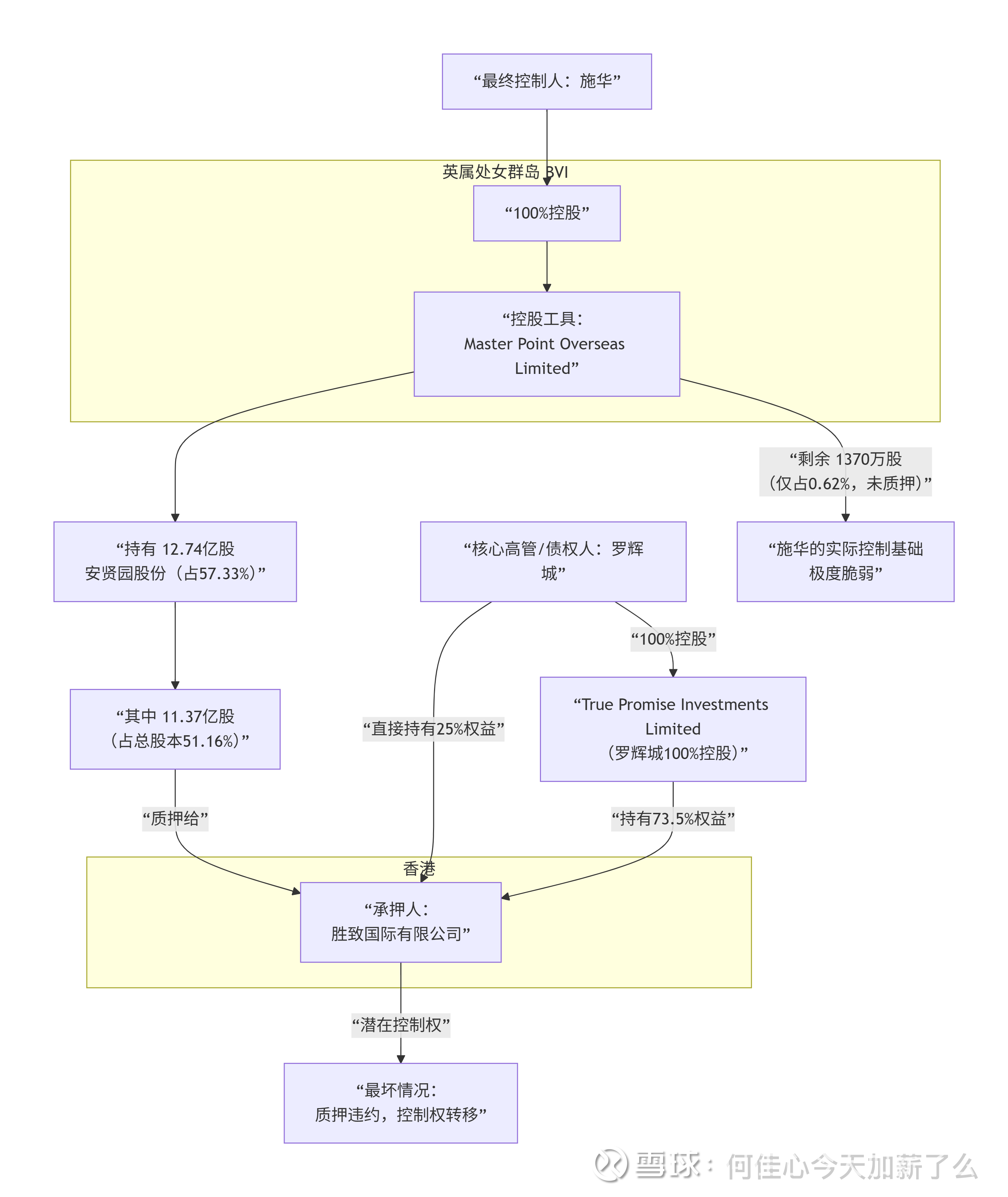 c.股权问题,公司股权已经质押给了罗辉城,债权人罗辉城成为实控人,创始人施华已失去对于公司的控制权,这是三条信息中最致命的。