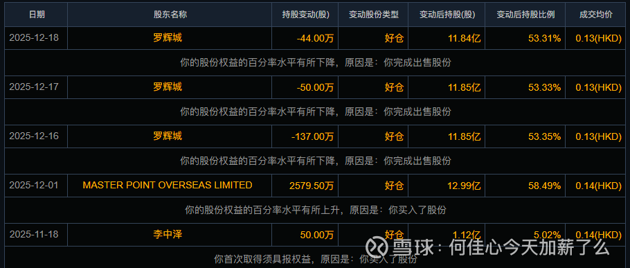 2.底部区间大小股东增持:李中泽增持安贤园中国(00922.HK)50万股 每股作价0.143港元;12月1日,MASTER POINT OVERSEAS LIMITED增持安贤园中国(00922)2579.5万股,每股均价0.139港元,总金额约为358.55万港元。增持后最新持股数目约为12.99亿股,最新持股比例为58.49%