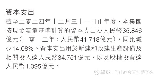 例如下图是蒙牛2024年年报中对于资本支出的表述,新建和改建的总和是34亿元,并没有对扩张&维持进行明显区分。