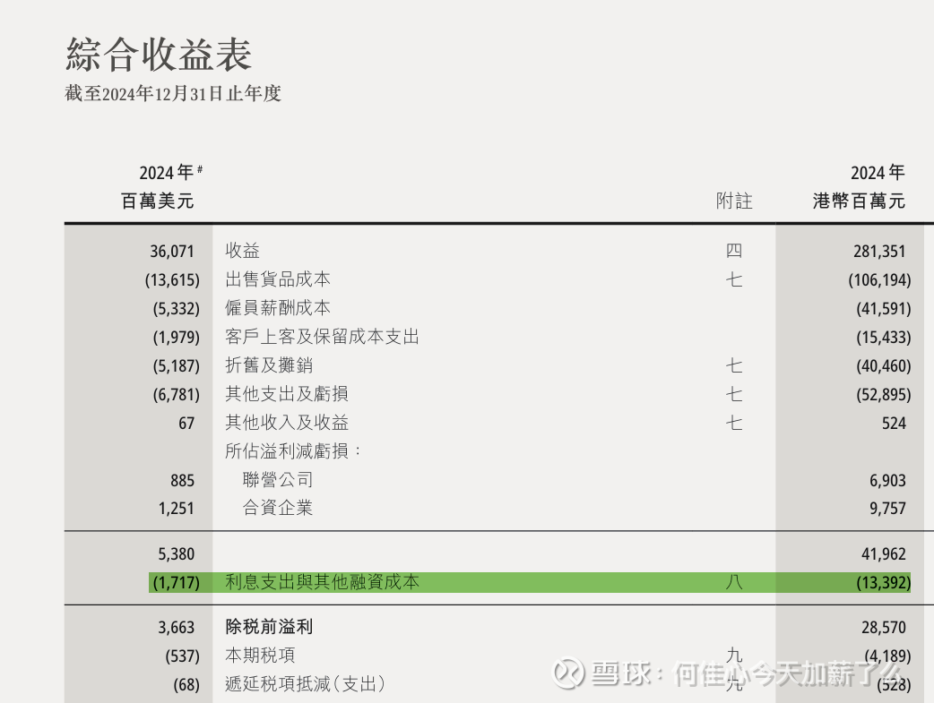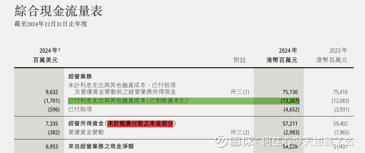 例如下图是长和2024年年报中对经营性现金流的表述,扣除了132亿利息支出与其他融资成本(与利润表中数据几乎一致),却没有对租赁付款之本金部分进行扣除。