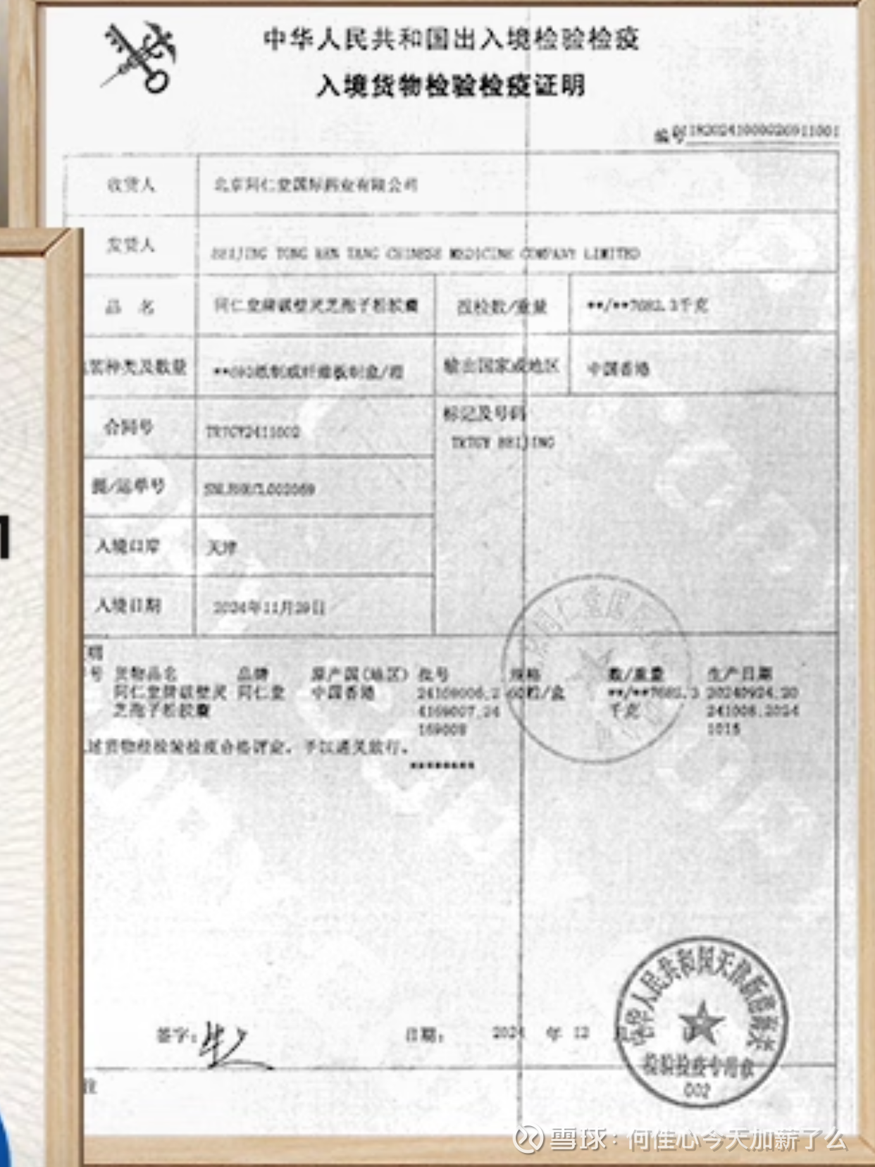 同仁堂国药自营店仅有灵芝孢子粉,且入境检验检疫中的输出地区为中国香港。