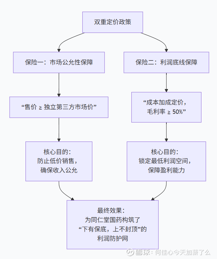 从定价策略中我提取到了两个关键信息:1.母公司同仁堂的拿货价格不得低于第三方 2.销售商品毛利率不得低于50%。通过双重保险,将同仁堂国药的利润空间和交易公平性用制度形式锁定下来,几乎完全规避了在关联交易中常见的利润输送风险