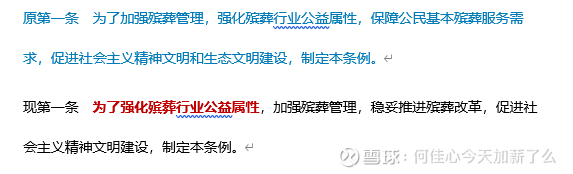 主要变化:将"强化殡葬行业公益属性"置于首位,更加突出公益属性。