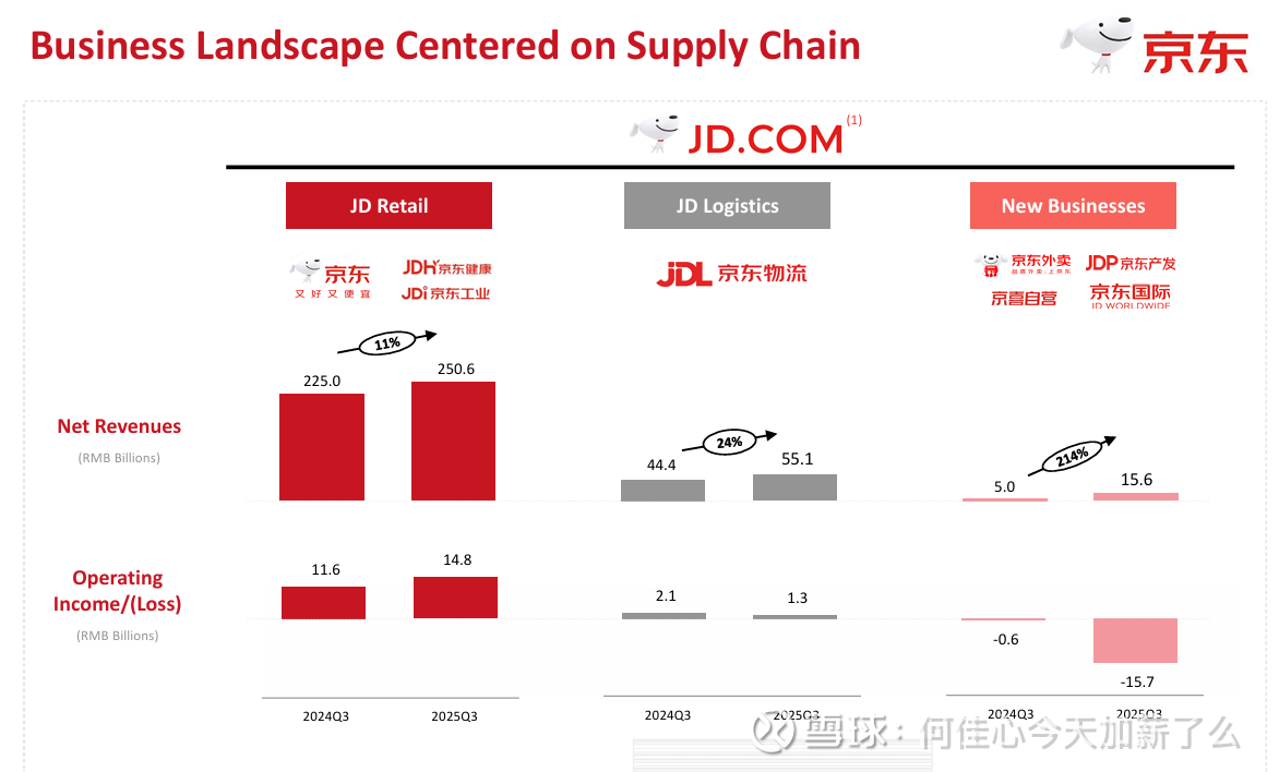 这是Q3单季度的盈利情况,主营业务京东零售148亿,京东物流13亿,外卖亏损157亿。