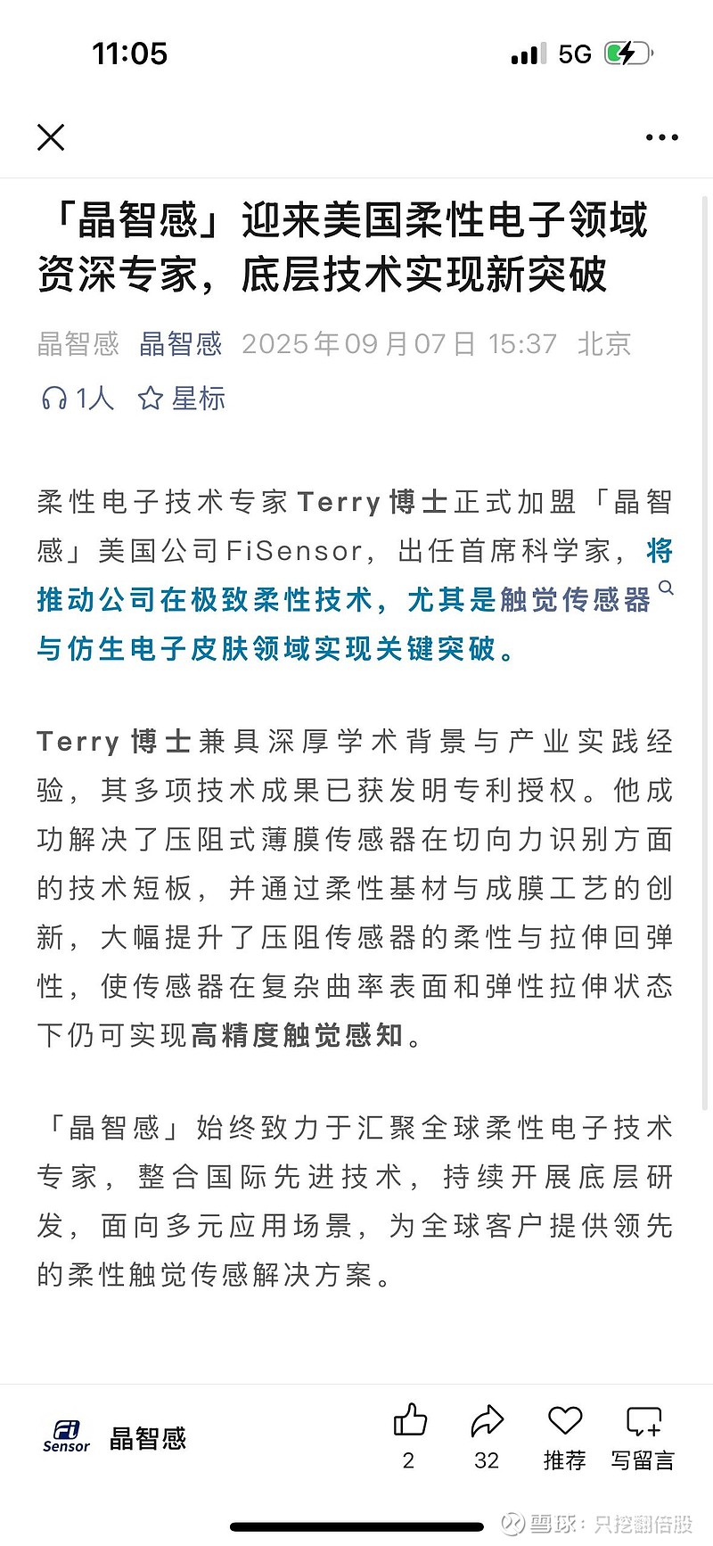 标签:电子皮肤+特斯拉+智元+小米团队+美国分公司+灵心巧手+美国技术大拿