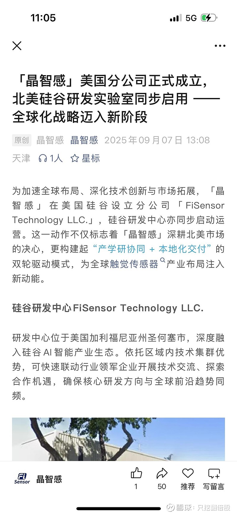 在美国硅谷设立分公司「FiSensor Technology LLC.」,硅谷研发中心亦同步启动运营。加速北美布局,配套北美的T客户做产品研发和后续量产配套准备。