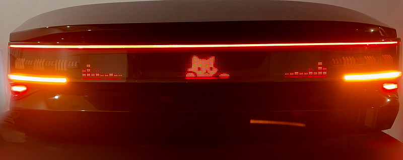 $依托多年「LED+」智能视觉技术的深厚积累,晶科电子在汽车外饰交互领域构建了从常规 LED 到 Mini LED 的全系列产品布局,覆盖P1.5至P4.0多种像素间距。其中,SMD 3030、2016与 Mini 1010系列等车规级 LED 器件具备“静态隐藏”效果——在熄灭状态下保持外观一致性,在点亮时呈现均匀、高一致性的光学表现,适用于兼顾设计美学与功能显示的车身外饰交互场景。尤其是晶科电子车规级 Mini 1010 器件,凭借其更高的像素密度和更精细的光学控制能力,可实现高分辨率、无缝拼接的外饰显示模块,为车辆带来接近影视级细腻度的动态呈现。