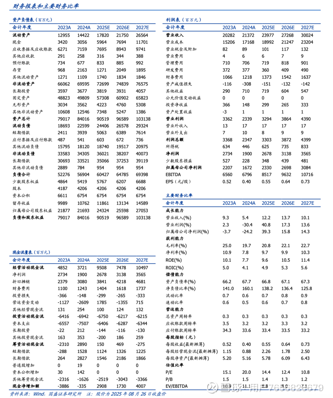 投资建议。长期仍看好公司装机增量释放&利用小时数修复和天然气业务现金流优势,我们预计公司2025-2027年实现营业收入239.77/272.68/300.24亿元,实现12.2%/13.7%/10.1%增长;归母净利润实现23.30/26.98/30.84亿元,对应2025-2027年EPS分别为0.55/0.64/0.73,对应PE分别为14.4/12.4/10.8倍。维持“买入”评级。