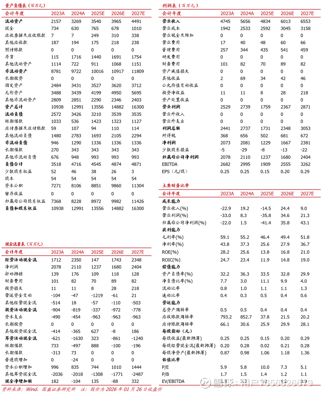 5.盈利预测与关键假设
