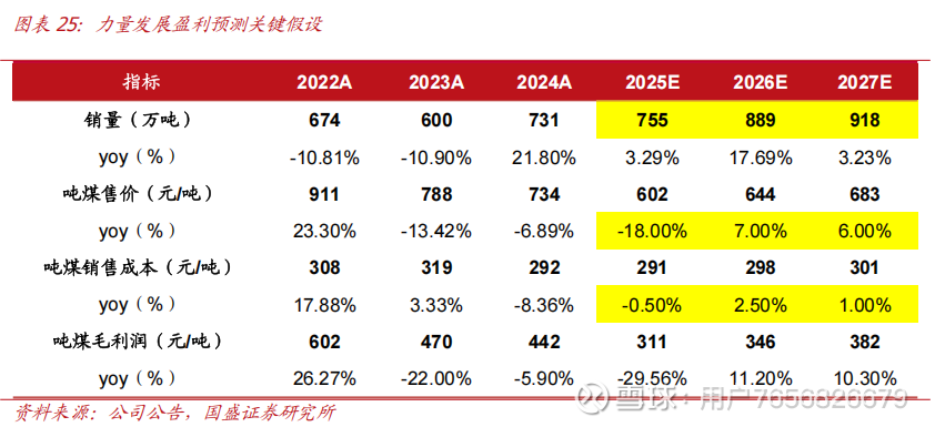 销量:考虑永安煤矿(120 万吨/年)于2024年11月进入试运转,预计2026年达产;韦一煤矿(90 万吨/年)预计2026年上半年进入试运转,计划2027年达产,我们假设公司2025-2027年煤炭销量分别为755、889、918万吨,同比分别增长3.29%、17.69%、3.23%。