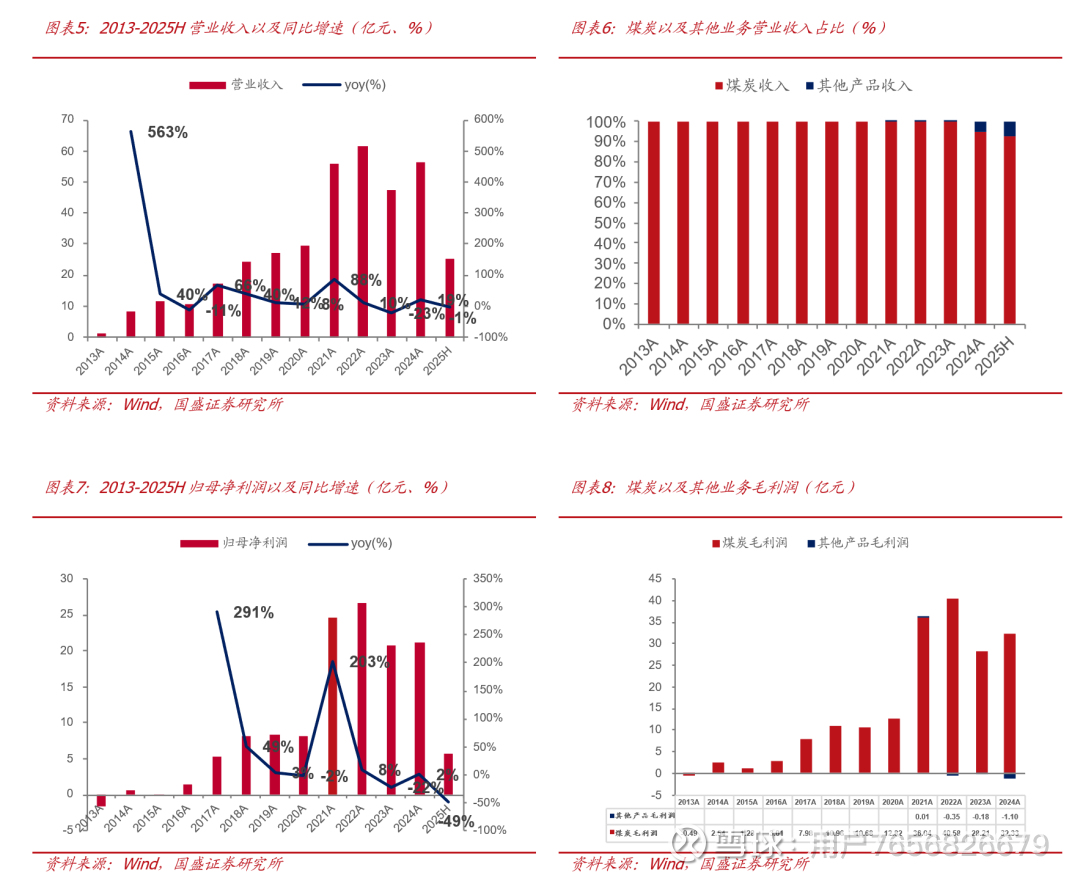 2024年公司营业收入、归母净利润分别为56.56亿元、21.10亿元,同比增速分别为19.19%、1.54%。2025年上半年,由于煤价持续走弱,公司盈利能力下滑,净利润同比下降48.73%至5.62亿元。