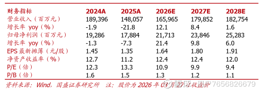 盈利预测与投资评级:考虑到当前煤价持续上涨,我们上调2026-2027年盈利预测,并新增2028年盈利预测。预计公司2026-2028年营业收入分别为1659.65、1798.52、1827.54亿元,实现归母净利润分别为217.13、238.46、252.83亿元(2026-2027年原预测值为170.94、184.91亿元),对应PE分别为10.9X/9.9X/9.4X,维持“买入”评级。