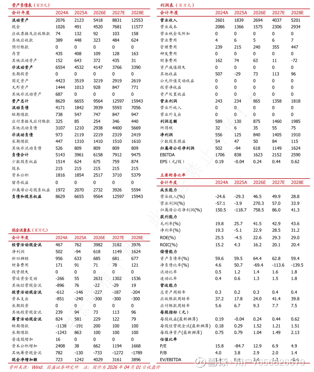 投资建议。公司作为纯粹的海外煤炭生产商,其产品市场化定价,不受国内长协机制限制,能充分享受全球海运煤价波动带来的高弹性。在印尼政府收紧RKAB配额、可能压缩整体产量的背景下,公司作为合规大矿,不仅受影响较小,反而有望在行业集中度提升中受益,获得更高的市场份额。公司产能的快速扩张,恰好承接市场趋势。本次年报虽披露短期亏损,但实质上清晰地展示了公司经营数据和成长蓝图,巩固了公司作为印尼煤炭高成长标的的核心投资逻辑。我们预计公司2026-2028年实现归母净利润分别为6.18亿元、11.49亿元、16.24亿元,对应PE分别为12.9X,6.9X,4.9X。