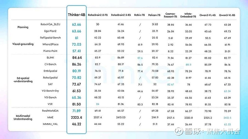 Thinker-4B仅用4B参数就在9项机器人核心任务中拿下全球第一,这背后是对传统大模型“参数越大性能越强”路径的颠覆。目前整体性能稳居全球第一。