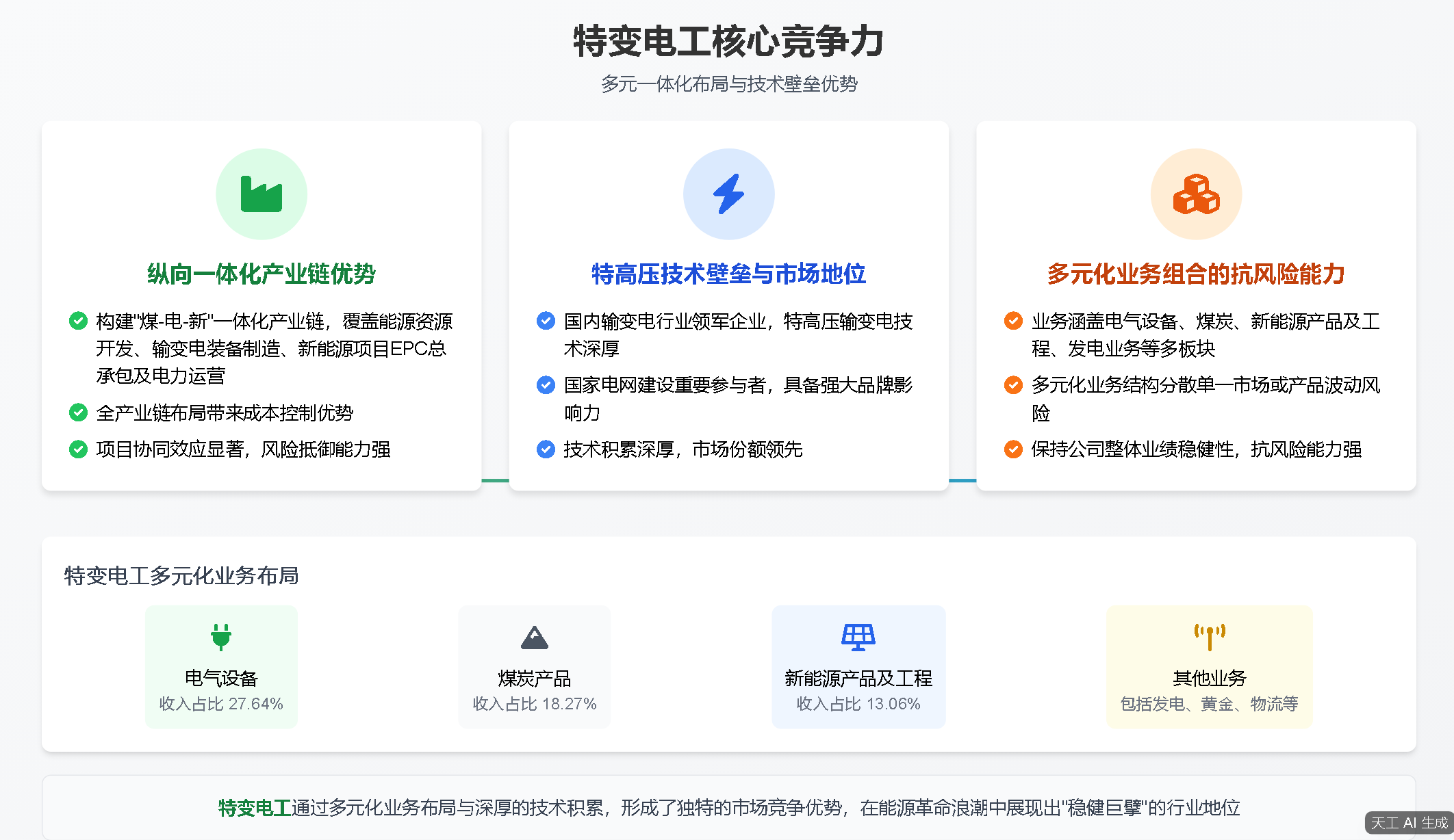 核心优势:纵向一体化产业链,特高压技术壁垒,多元化业务抗风险
