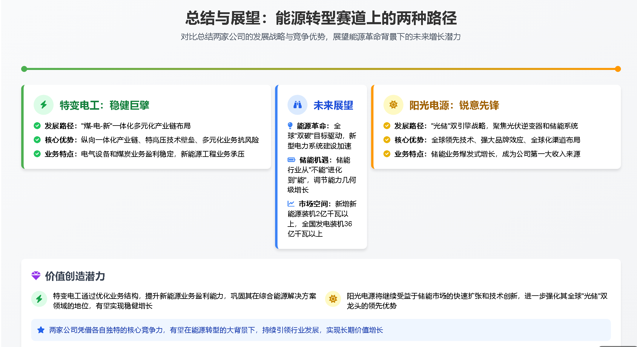 对比总结两家公司的发展战略与竞争优势,展望能源革命背景下的未来增长潜力。