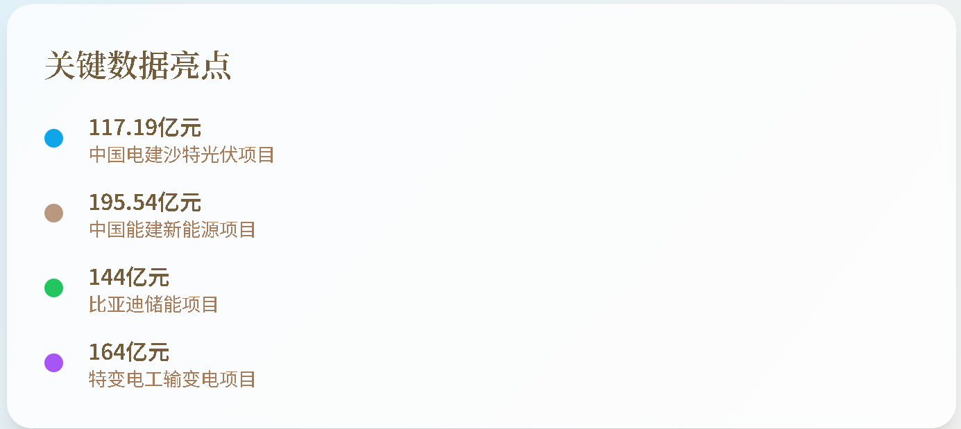近半年来,中国企业在全球新能源及电气装备市场,特别是在中东地区,取得了显著的突破。这些项目主要集中在光伏、风电和储能领域。