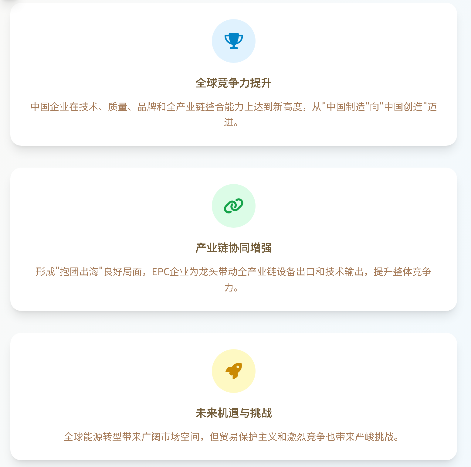 近半年来,中国企业在海外新能源及电气装备市场取得的辉煌成就,是中国制造业综合实力和全球竞争力提升的集中体现。