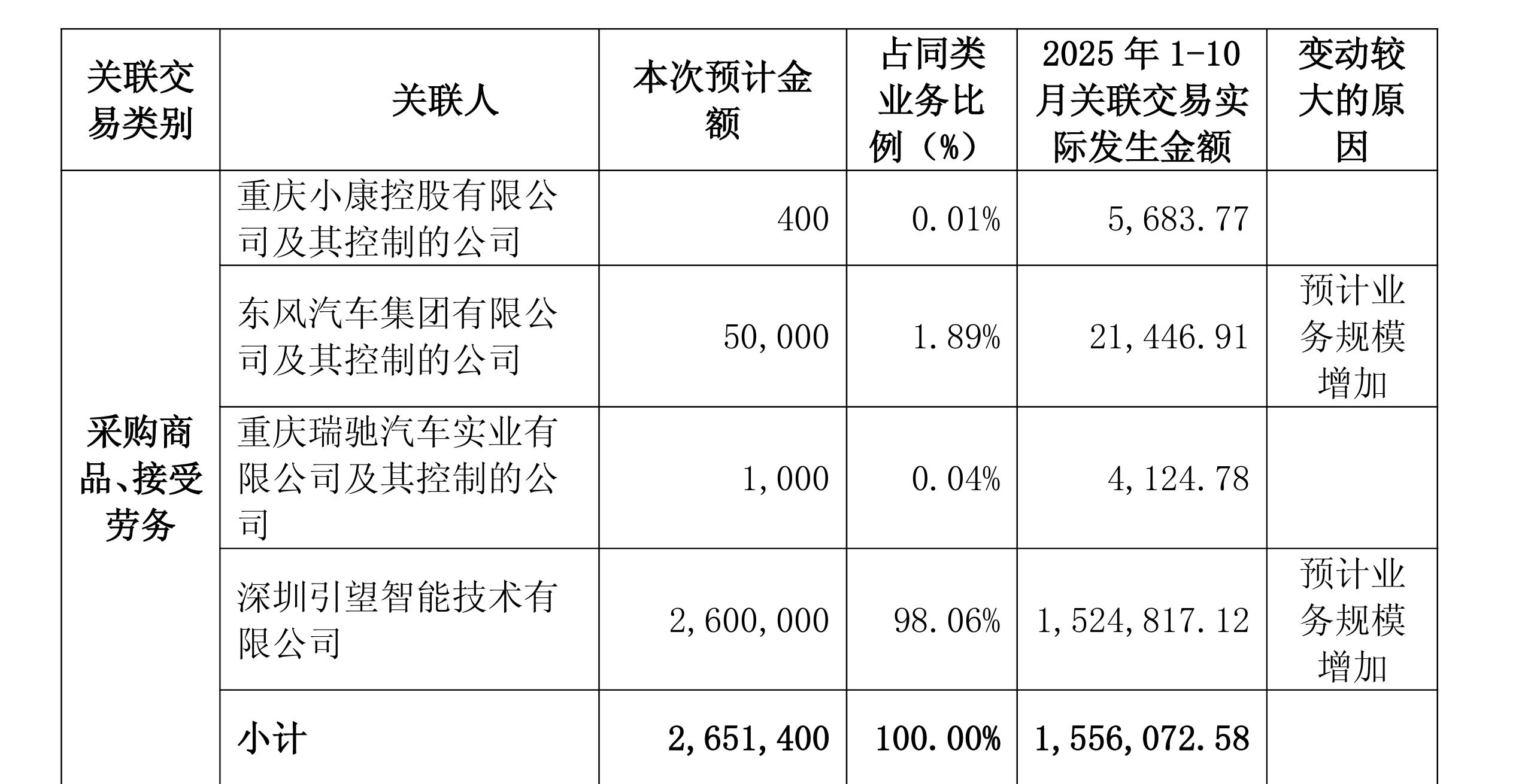 赛力斯今天公布的和引望科技26年关联交易额增长30%,