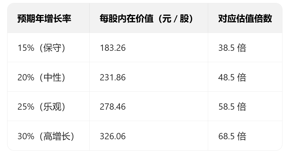 这里的当前收益是指今年的每股收益,预期年增长率可以是下表中的任一数值: