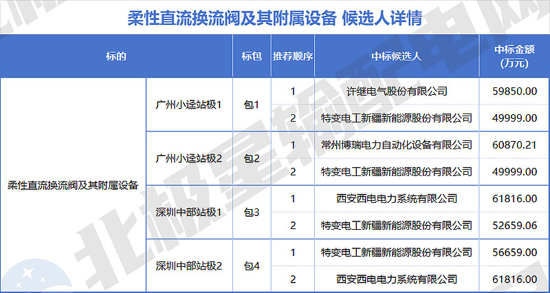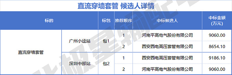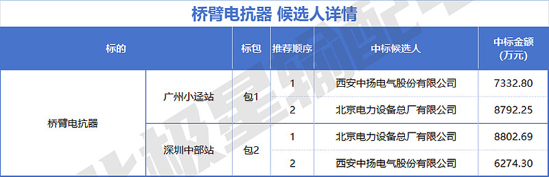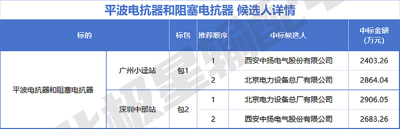 中国西电旗下有4家企业入围,分别是西安西电电力系统有限公司、西安西电变压器有限责任公司、西安西电高压套管有限公司、西安西电电力电容器有限责任公司,投标报价共计约100505.15 万元。