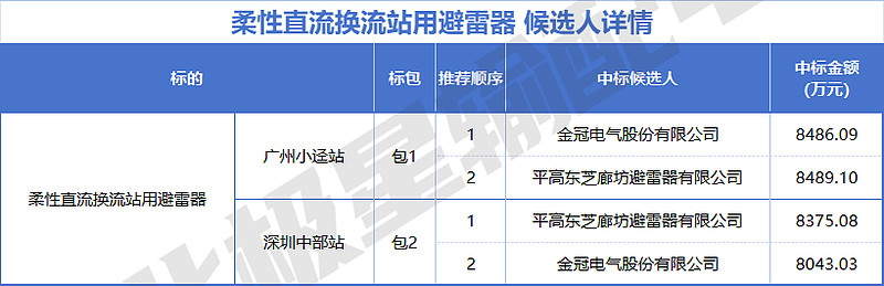 平高电气旗下有2家企业入围,分别是河南平高电气股份有限公司、平高东芝廊坊避雷器有限公司,投标报价共计约20611.08 万元。