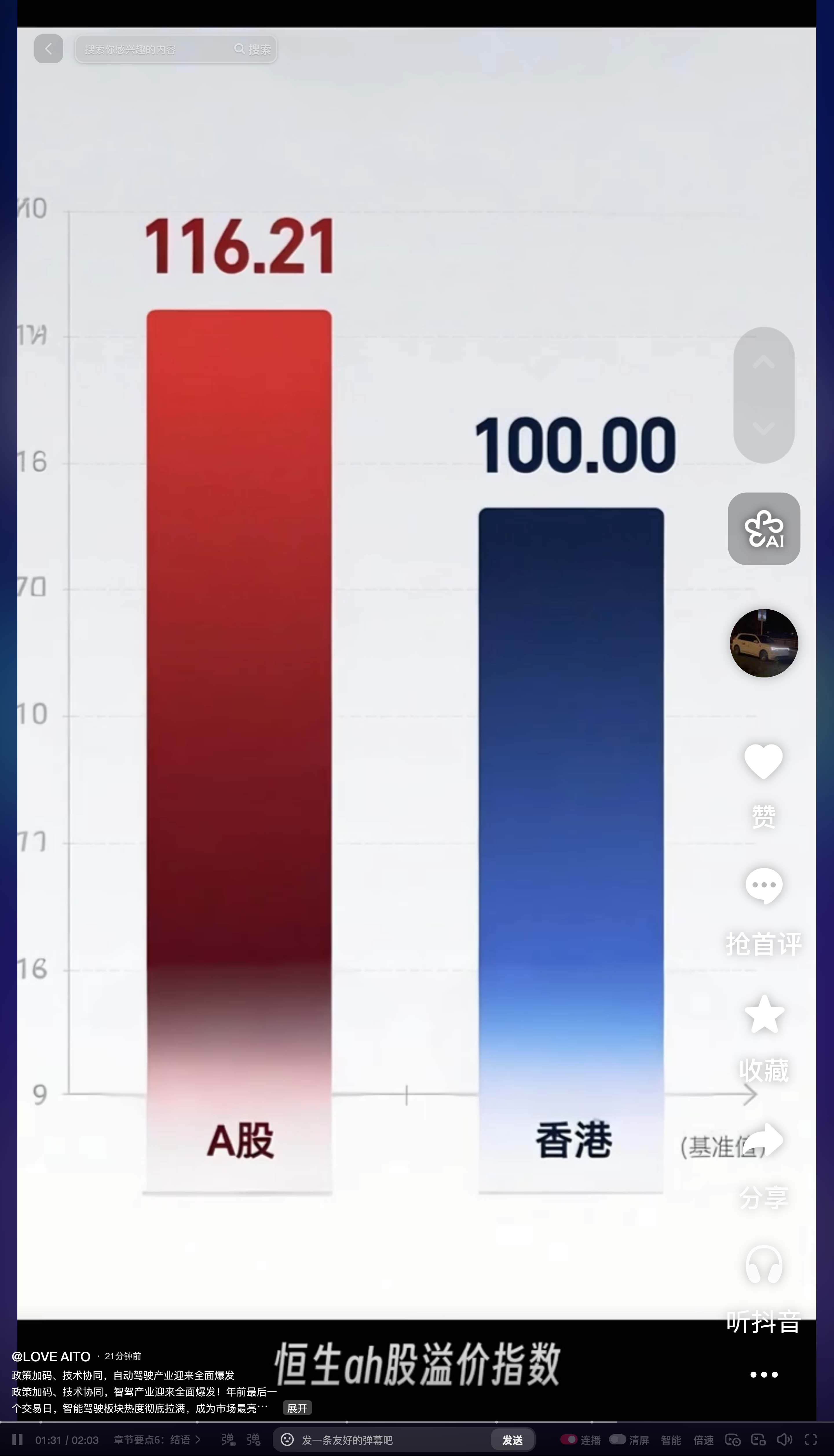 当前恒生 AH 股溢价指数约 116.21,两地市场差异显著,港股下跌仅为短期流动性扰动,丝毫撼动不了 A 股智驾板块的爆发态势与长期向好逻辑。