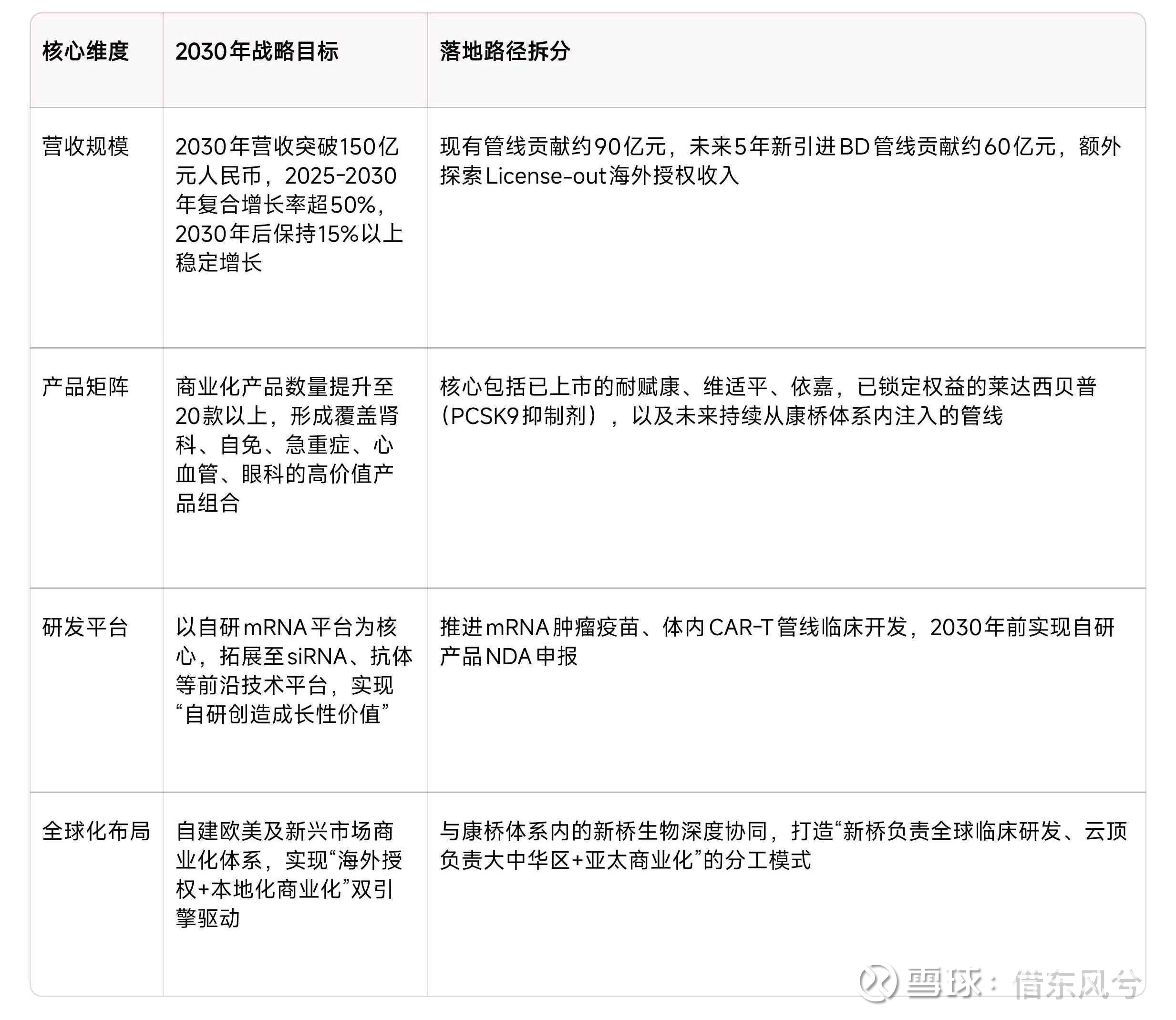 2030战略中,“每年引进3-5个3年内可商业化的重磅管线、2030年20款以上商业化产品”的目标,本质就是傅唯商业化整合理念的落地——云顶将成为康桥体系内的商业化整合平台,把康桥孵化、投资的Biotech管线,以及市场上其他Biotech的中后期管线,通过BD方式注入云顶,借助云顶已验证的商业化能力实现价值兑现,避免管线“青苗早卖”的价值流失。