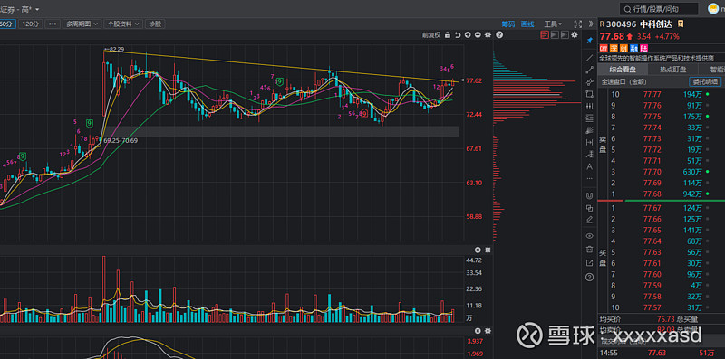 瞅了一眼$中科创达(SZ300496)$ 有点东西 大量都在底部 放量站上颈线 小级别也是多头结构 下一波拉伸快了